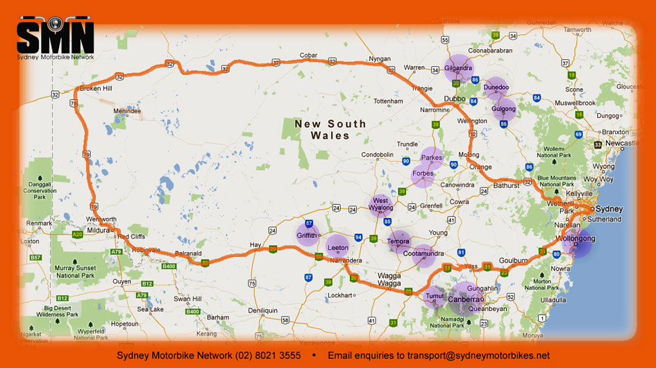 Generally our Sydney-Western NSW-Riverina-Sydney motorcycle transport run leaves every 3rd week.